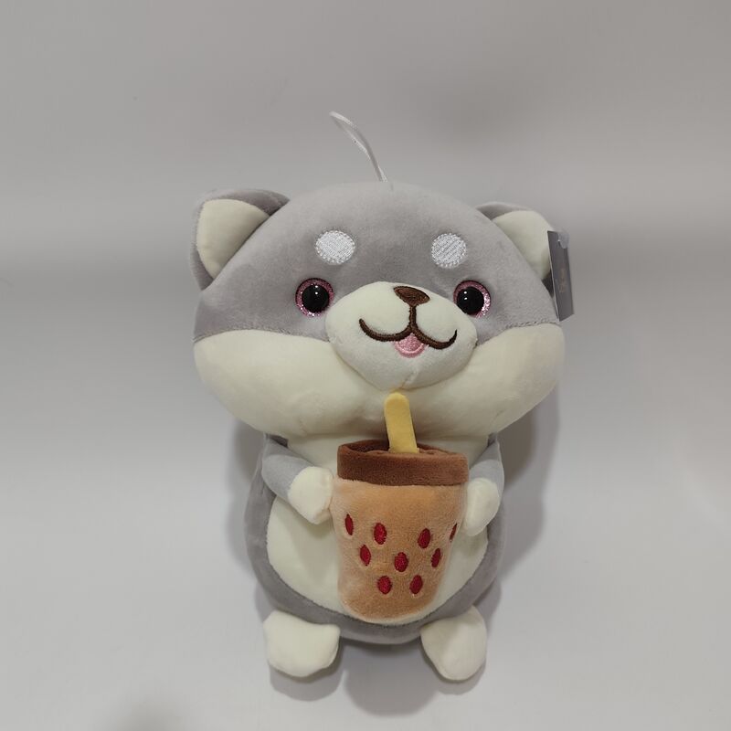 20cm Super Lembut & Squishy Shiba Inu Plush Memeluk Cangkir Bubble Tea